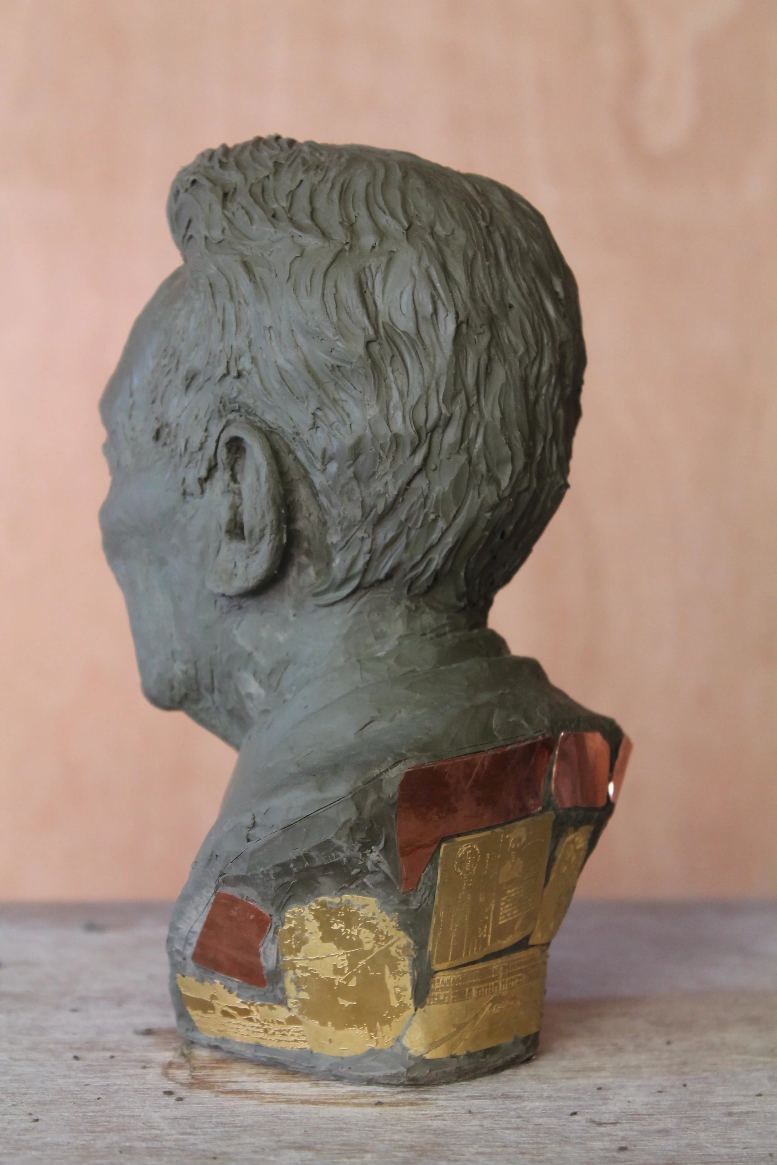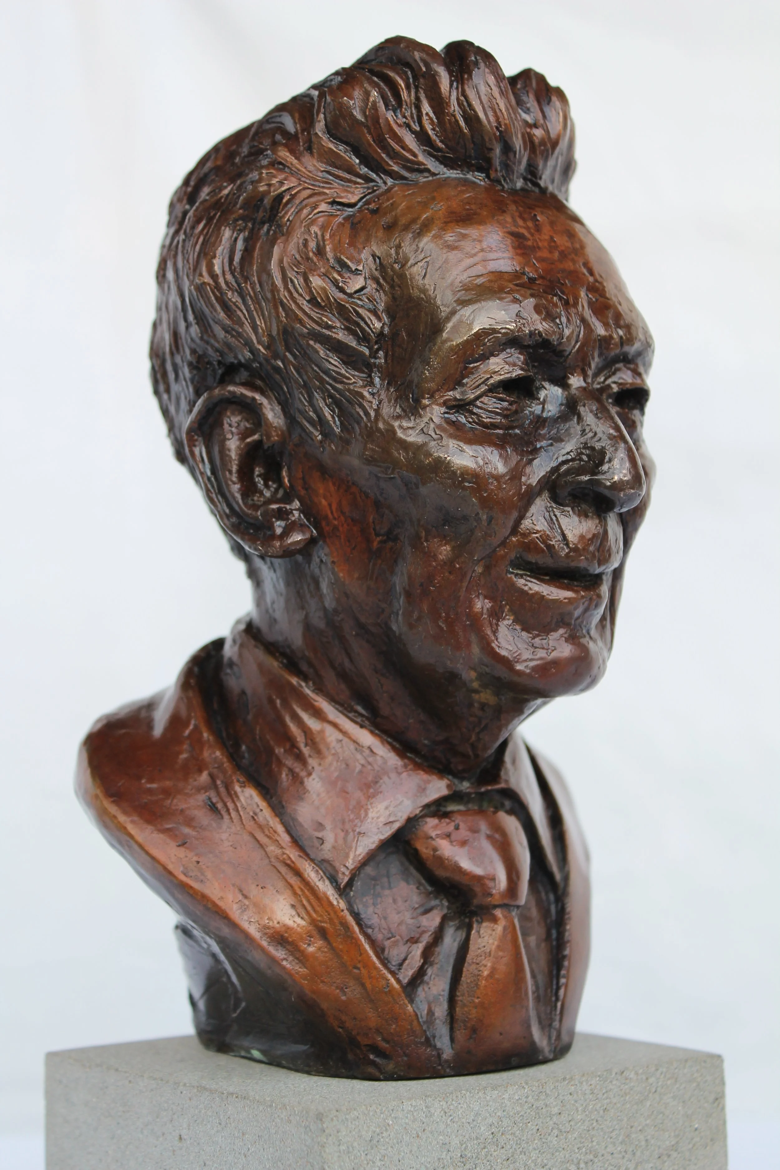 Taking precise measurements and photographs directly from the 94-year-old subject allowed me to capture both his physical likeness and spirited personality. Cast in bronze using traditional lost-wax methods, this family heirloom is mounted on hand-cut Forest of Dean sandstone.